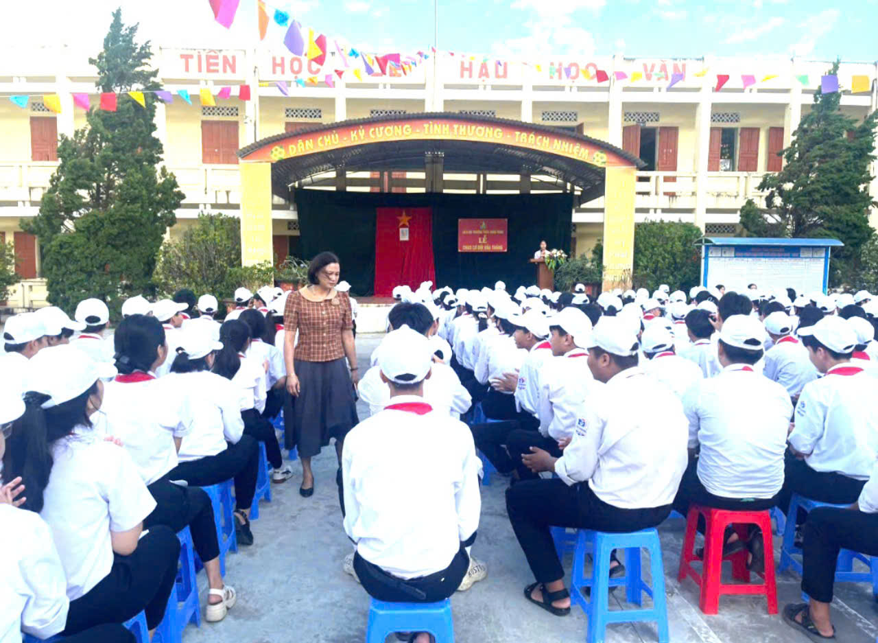 Cũng tại buổi lễ, thay mặt BGH cô Đặng Thu Hằng Phó Hiệu trưởng đã giao nhiệm vụ và phát động đợt thi đua "Dạy tốt - Học tốt" chào mừng kỷ niệm Ngày Phụ nữ Việt Nam 20/10, triển khai kế hoạch KSCL giữa HK1 và quán triệt HS về việc ký Cam kết chấp hành Luật giao thông (cổng trường ATGT).