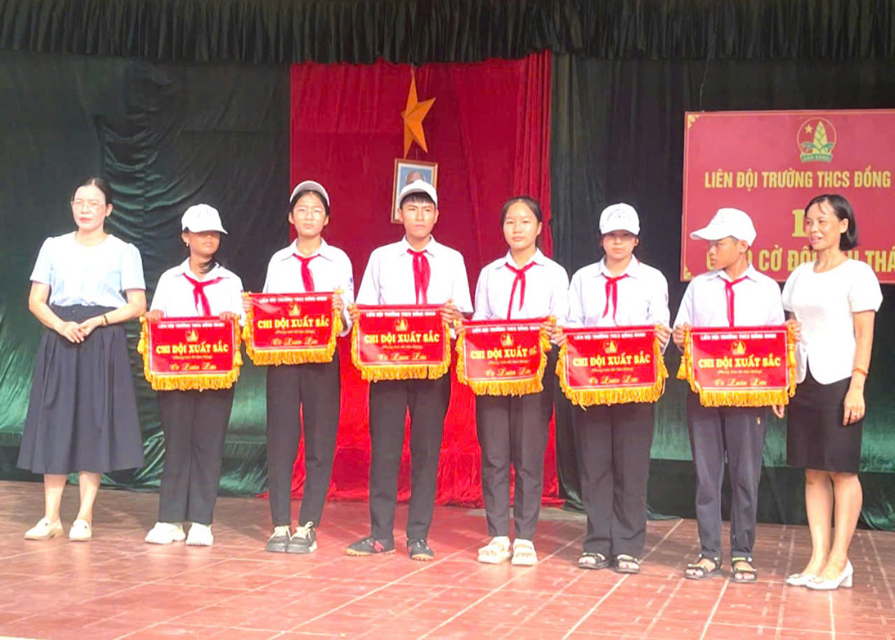 Buổi lễ đã tiến hành đánh giá đợt thi đua tháng 9/2024 (trường đã có 03 em được vào đội tuyển thi HSG cấp thành phố: Môn Toán: Minh 9A, Trinh 9A; Môn Văn: Chi 9A; và 01 em được giải nhì HSG cấp huyện môn bơi: Hiếu 8C); Trao Cờ thi đua xuất sắc (cờ luân lưu tháng 9) cho 6/11 chi đội: Về nề nếp: Lớp 8A, 8B, 9B được nhận Cờ; Về Học tập: Lớp 9A, 7B, 6B được nhận cờ.