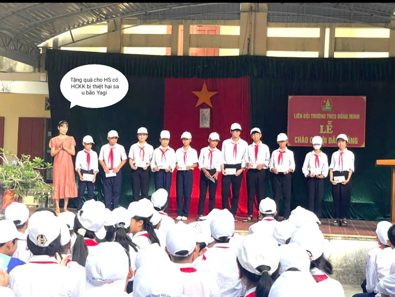 Sau cùng nhà trường đã tiến hành phát quà cho 11 em HS có hoàn cảnh đặc biệt khó khăn bị thiệt hại nặng sau bão Yagi (Kinh phí từ các nhà hảo tâm từ bên Đức gửi về ủng hộ, do cô giáo Hoàng Thị Hằng Nga liên kết vận động được - Tổng trị giá trên 5 triệu đồng).