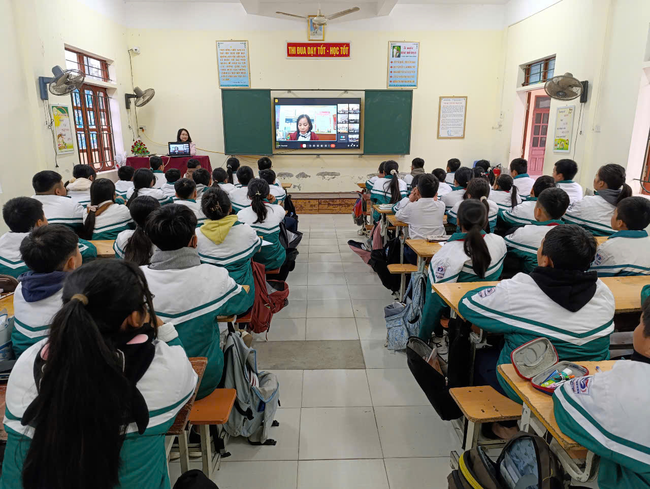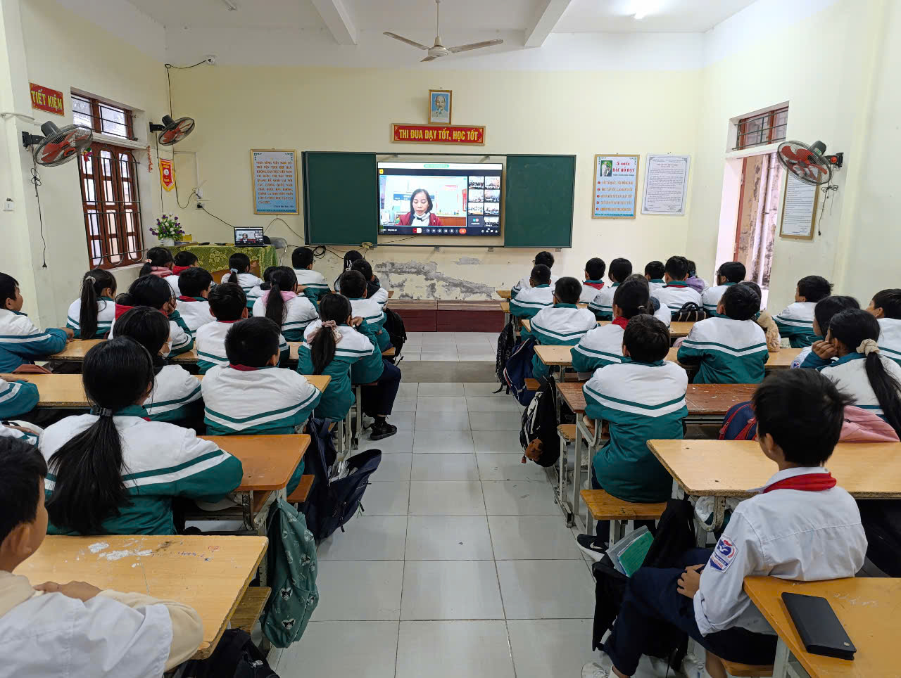 Với tinh thần làm việc khoa học, có sự chuẩn bị chu đáo của các bộ phận nên buổi chào cờ trực tuyến giữa tháng 12 đã diễn ra thuận lợi, tất cả HS đều chăm chú theo dõi để thực hiện.
