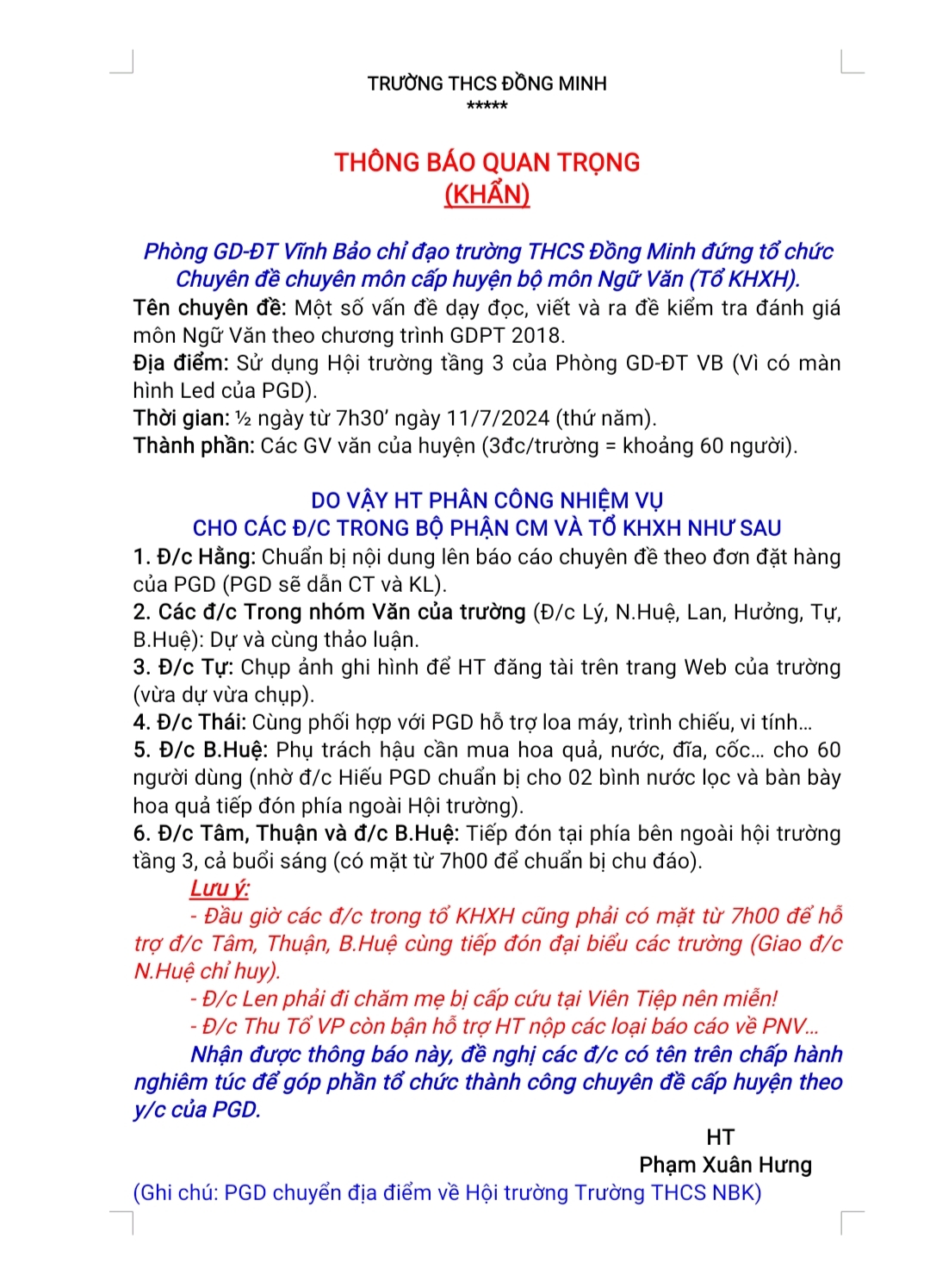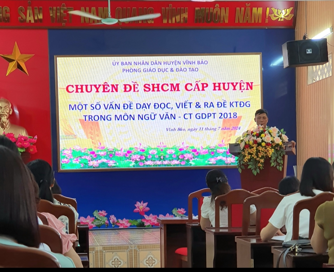 Thực hiện sự chỉ đạo của Phòng GD-ĐT Vĩnh Bảo, sáng ngày 11/7/2024 Trường THCS Đồng Minh cùng với PGD tổ chức Chuyên đề chuyên môn cấp huyện bộ môn Ngữ Văn.