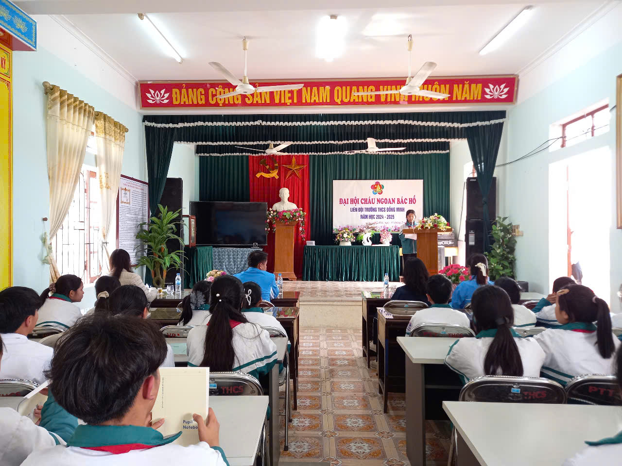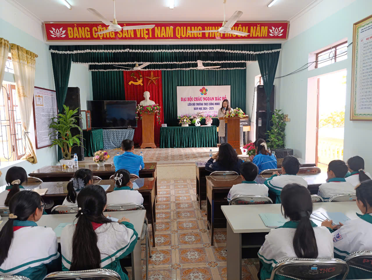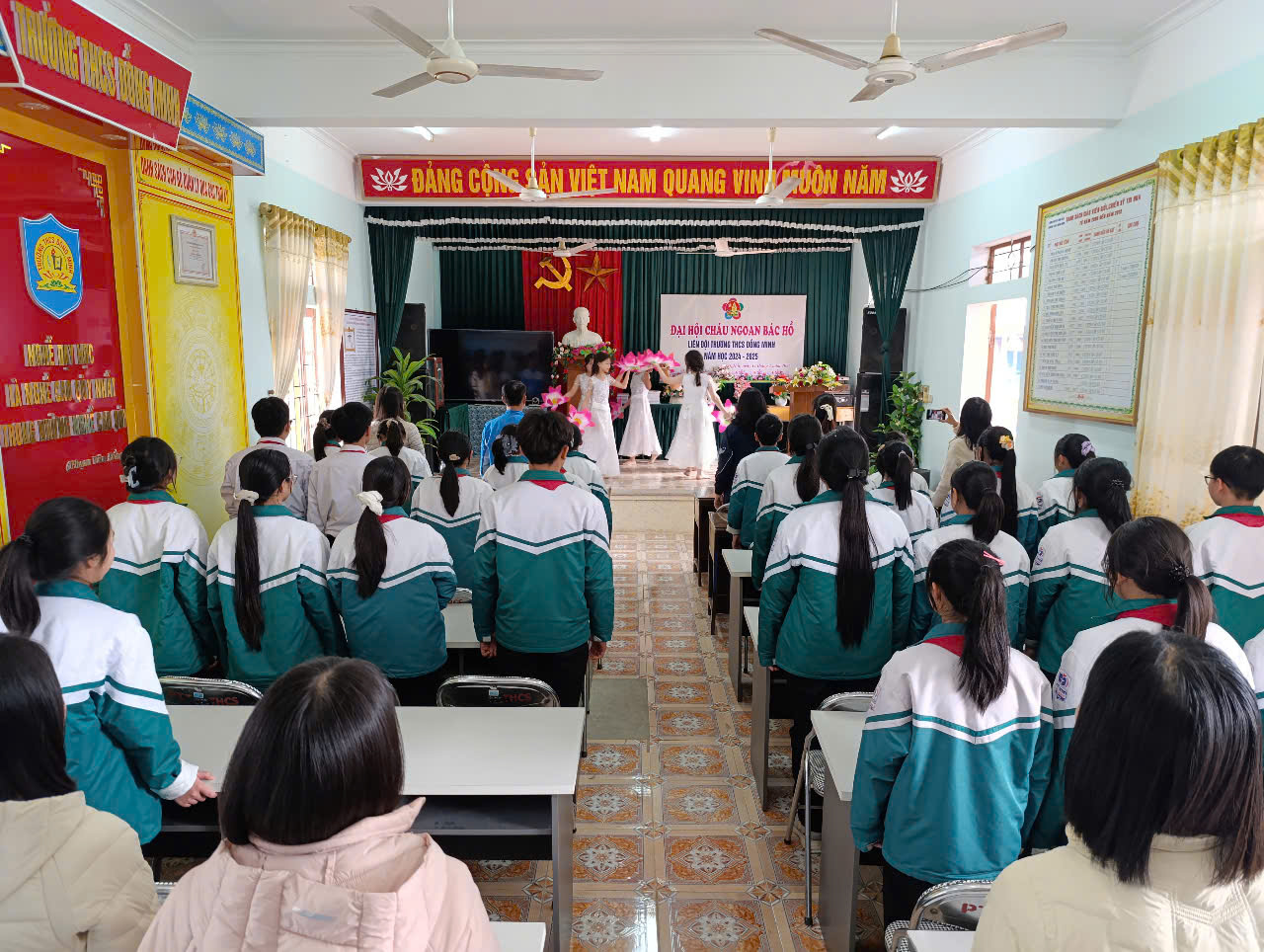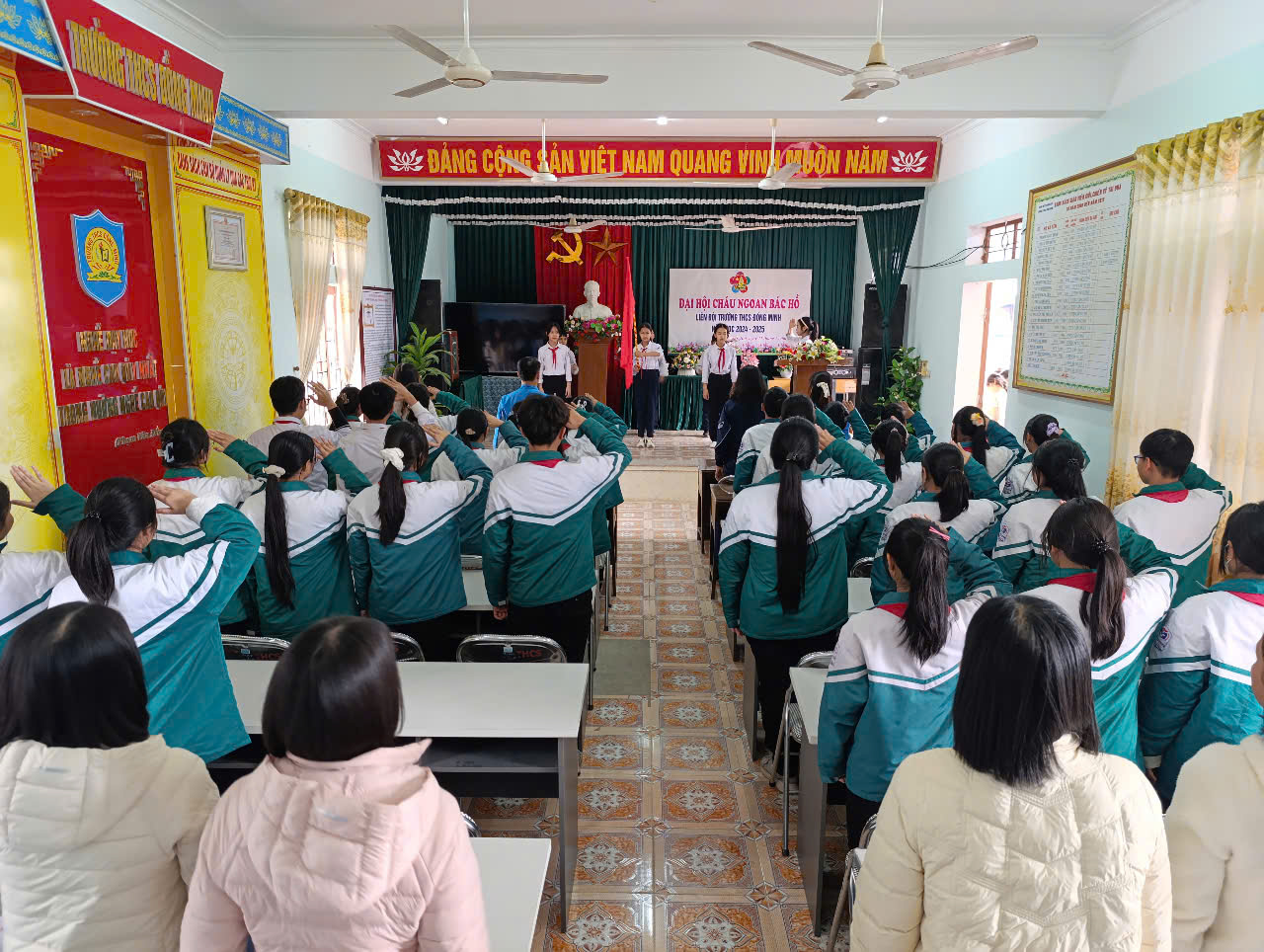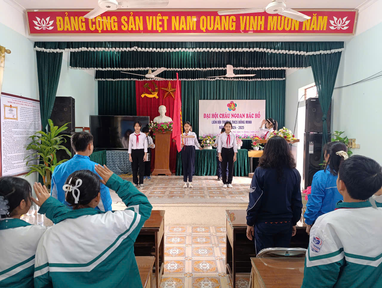Thực hiện Kế hoạch năm học 2024-2025; Hướng dẫn số 02-HD/HĐĐ, ngày 06/01/2025 của Hội đồng Đội huyện Vĩnh Bảo về việc tổ chức Đại hội CNBH các cấp, tiến tới Đại hội CNBH huyện Vĩnh Bảo lần thứ IX - năm 2025 và Đại hội CNBH thành phố HP lần thứ IX - năm 2025; Chiều ngày 11/02/2025 Liên Đội Trường THCS Đồng Minh long trọng tổ chức Đại hội cháu ngoan Bác Hồ - năm 2025.