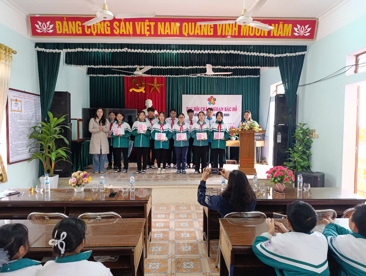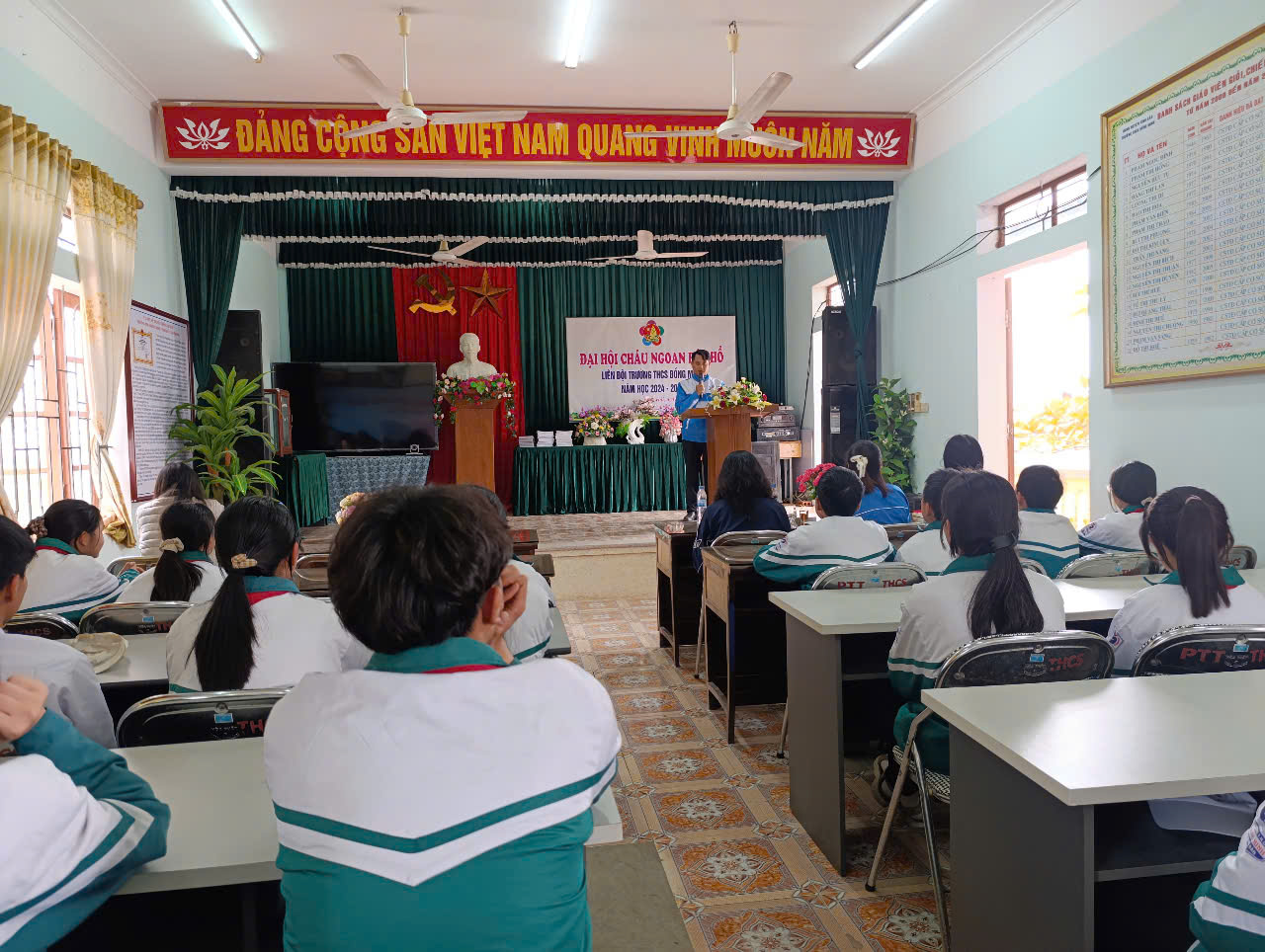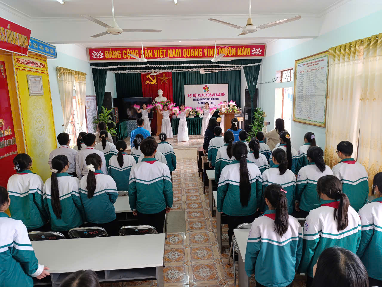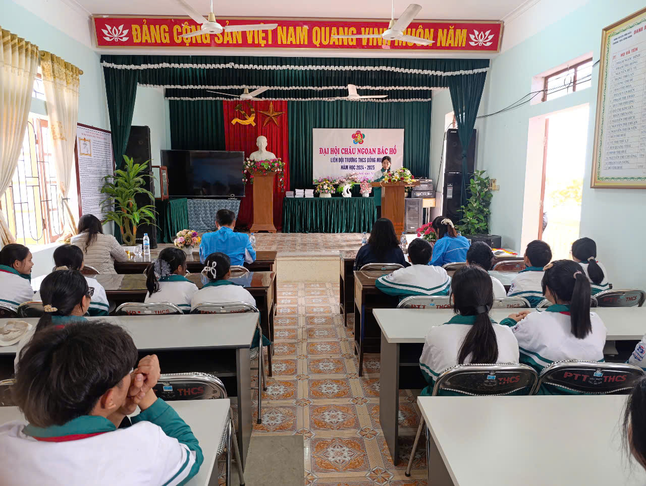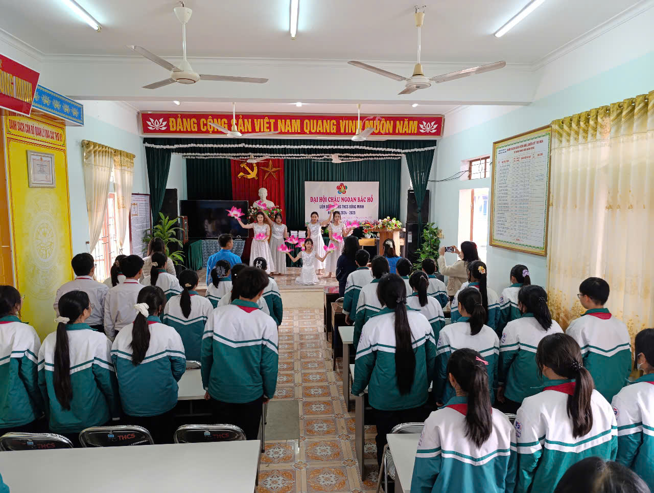 Thực hiện Kế hoạch năm học 2024-2025; Hướng dẫn số 02-HD/HĐĐ, ngày 06/01/2025 của Hội đồng Đội huyện Vĩnh Bảo về việc tổ chức Đại hội CNBH các cấp, tiến tới Đại hội CNBH huyện Vĩnh Bảo lần thứ IX - năm 2025 và Đại hội CNBH thành phố HP lần thứ IX - năm 2025; Chiều ngày 11/02/2025 Liên Đội Trường THCS Đồng Minh long trọng tổ chức Đại hội cháu ngoan Bác Hồ - năm 2025.