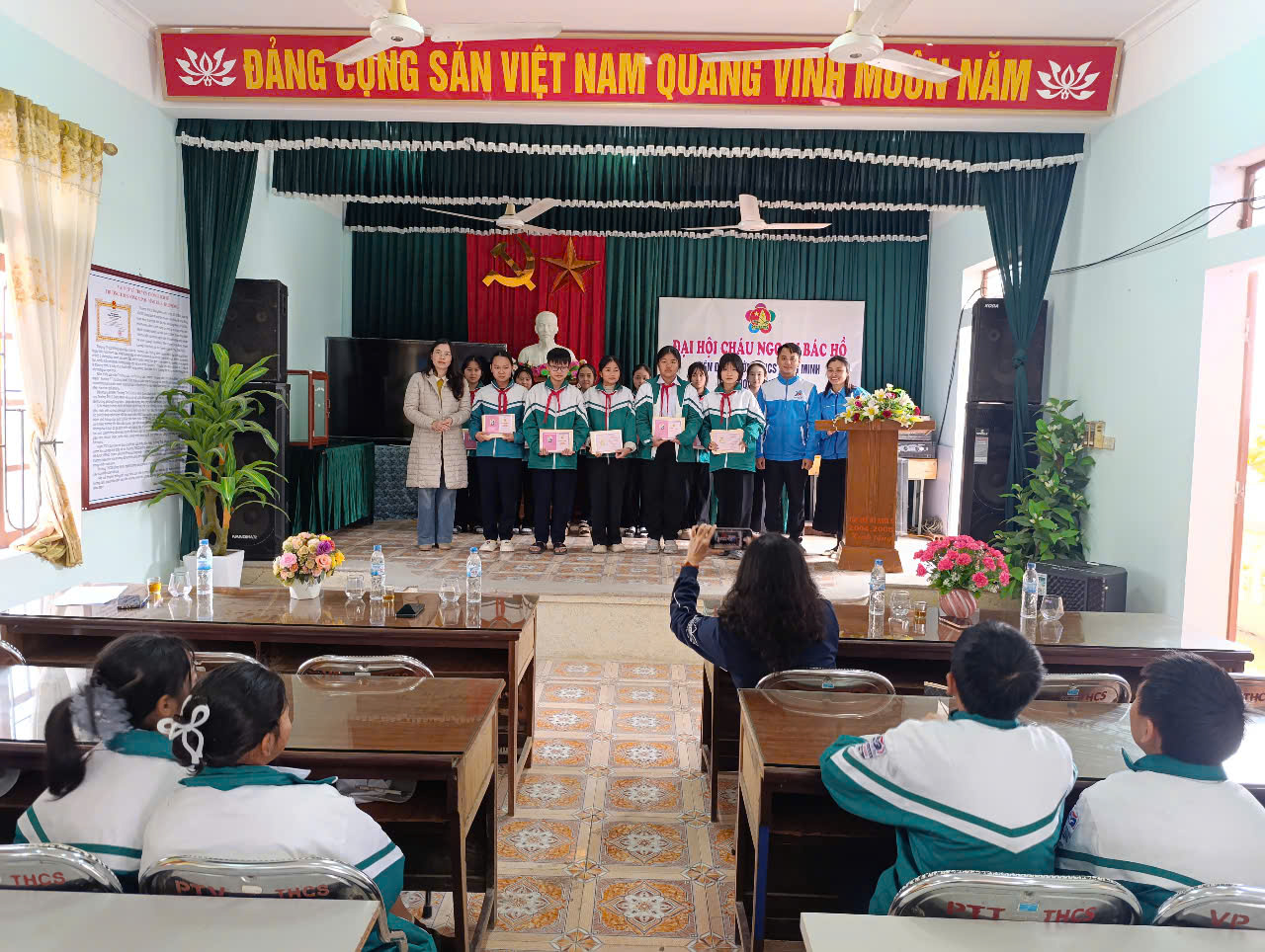 Về dự Đại hội có Anh Đoàn Quốc Việt - Bí thư Đoàn xã Vĩnh Hải; Chị Trần Thị Mỹ Duyên PBT Đoàn xã Vĩnh Hải; Các ông bà đại diện Hội CMHS; Các thầy cô trong BGH, GVCN và gần 40 đại biểu CNBH đại diện cho trên 260 bạn HS là Cháu ngoan Bác Hồ của trường THCS Đồng Minh.