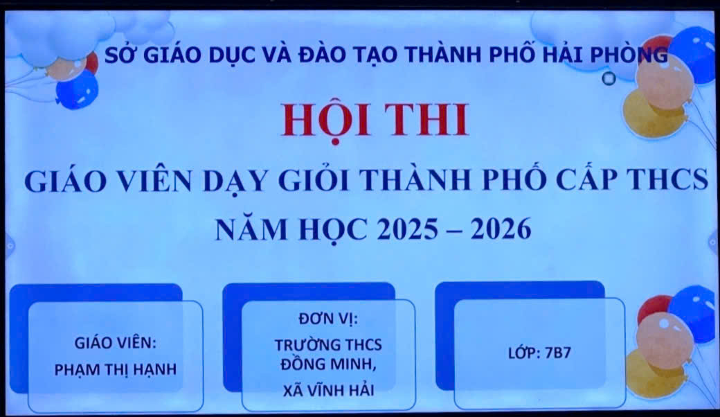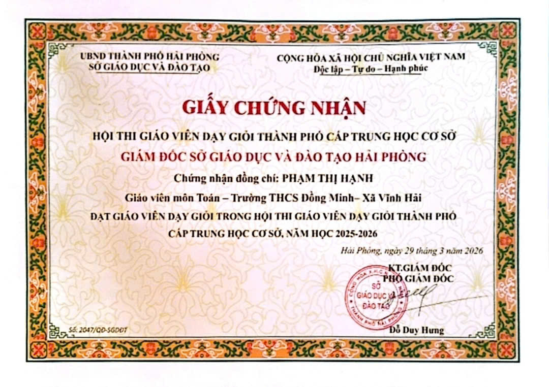 Thực hiện nhiệm vụ năm học, căn cứ Thông báo 1268/TB-SGDĐT, Phòng VHXH xã Vĩnh Hải đã chọn cử cô giáo Phạm Thị Hạnh - GV Toán Trường THCS Đồng Minh thành đại diện duy nhất cho Khối trường THCS của xã Vĩnh Hải tham dự kì thi GVDG cấp thành phố năm học 2025-2026.