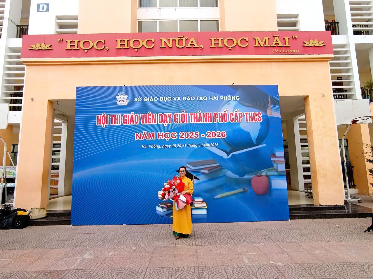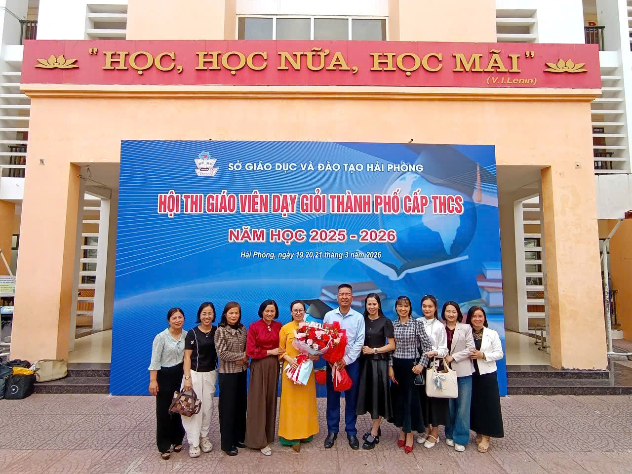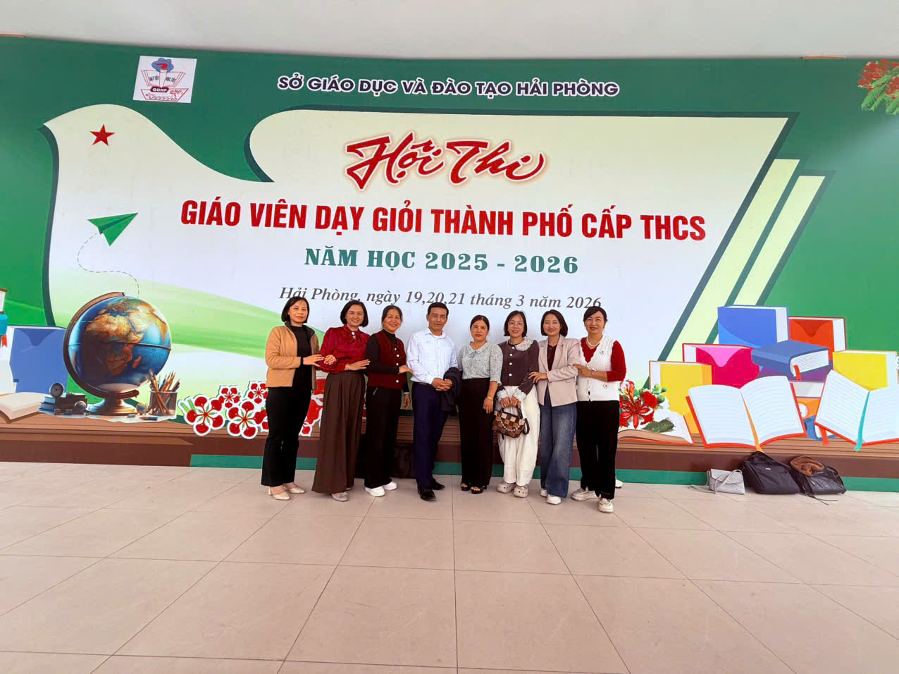 (Kì thi tổ chức ngày 19/3/2026 toàn trường nghỉ học, nhà trường thuê xe ô tô cho tất cả CBGV đi đến Trường THCS Chu Văn An, THCS Lạc Viên dự giờ học tập BDCM, tìm hiểu về phòng học thông minh và cổ vũ cho cô Phạm Thị Hạnh hoàn thành tốt bài thi GVDG TP)