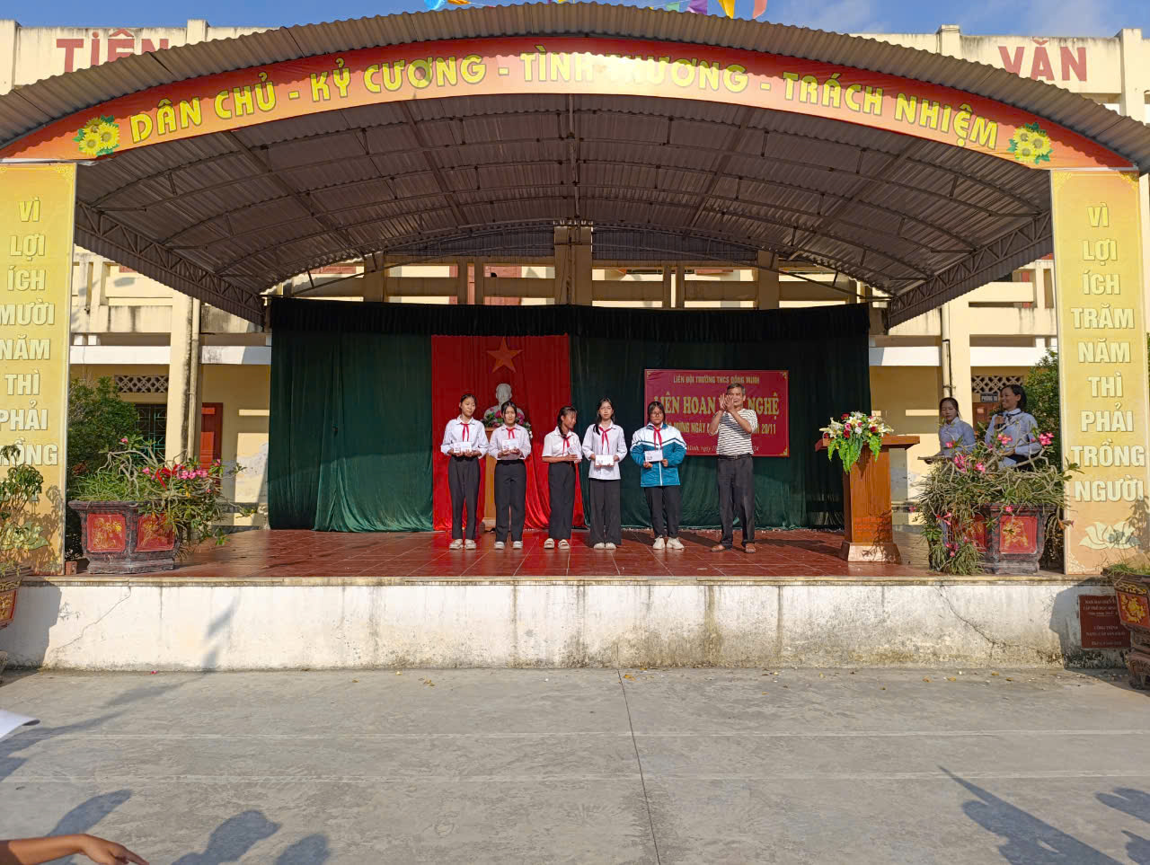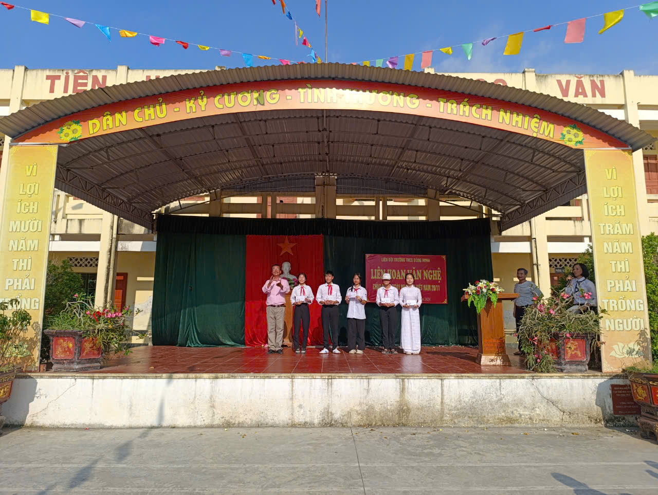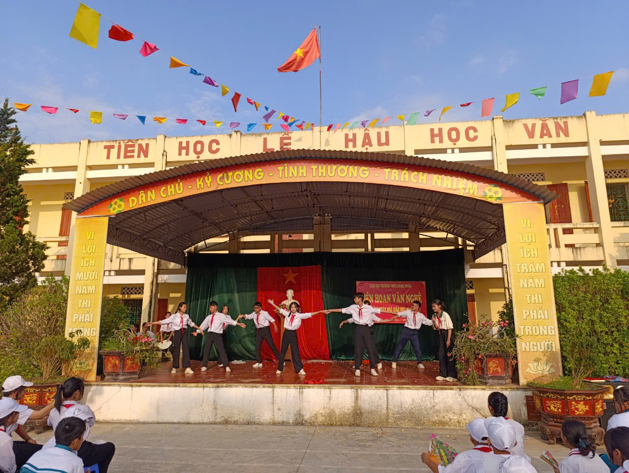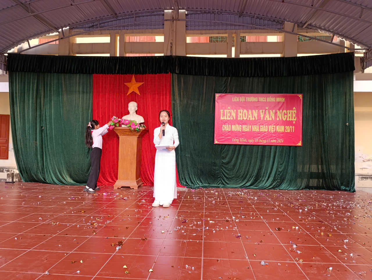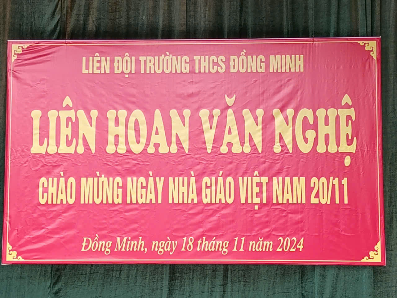 Thực hiện nhiệm vụ năm học và Kế hoạch hoạt động công tác Đội, phong trào thiếu nhi năm học 2024 - 2025; hòa chung không khí hân hoan của cả nước hướng tới chào mừng 42 năm Ngày Nhà giáo Việt Nam (20/11/1982-20/11/2024), vào tiết chào cờ sáng ngày 18/11/2024, trường THCS Đồng Minh đã tổ chức Liên hoan nghệ thuật cho học sinh toàn trường; Với mục đích tạo cho các em học sinh có một sân chơi lành mạnh, bổ ích sau những giờ phút miệt mài học tập; tạo không khí thi đua vui tươi, phấn khởi trong nhà trường; đồng thời góp phần giáo dục cho các em học sinh ý thức tổ chức kỉ luật, tinh thần đoàn kết, học hỏi lẫn nhau, rèn luyện các kĩ năng để phát triển toàn diện trong cuộc sống.