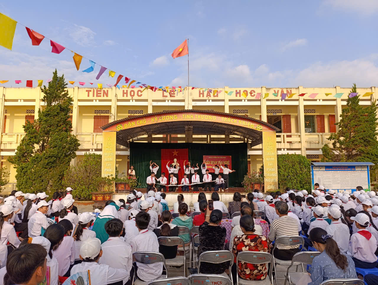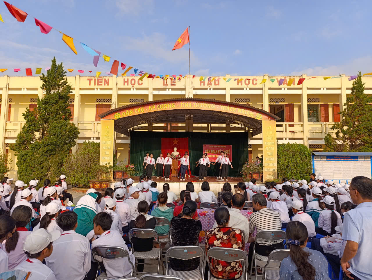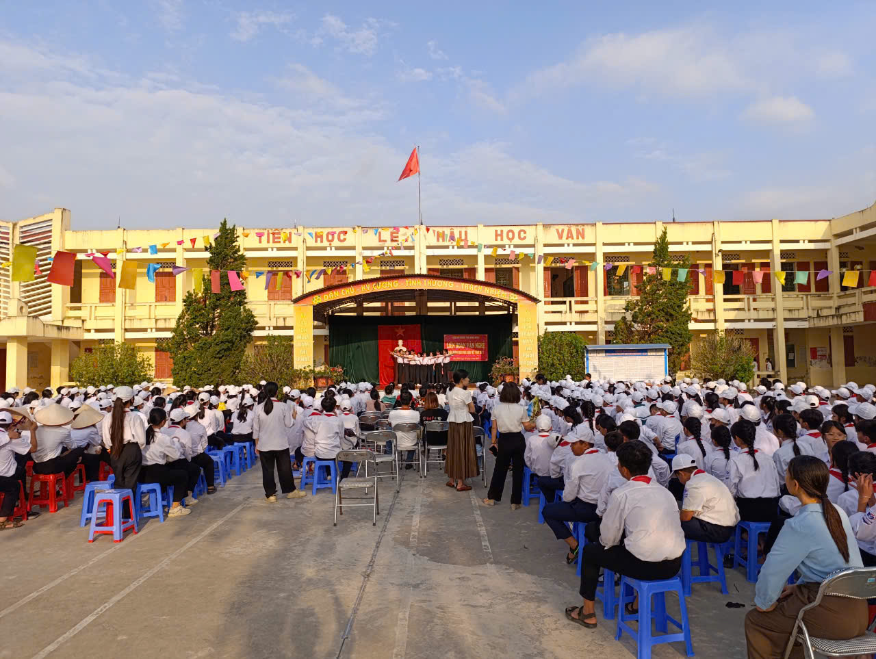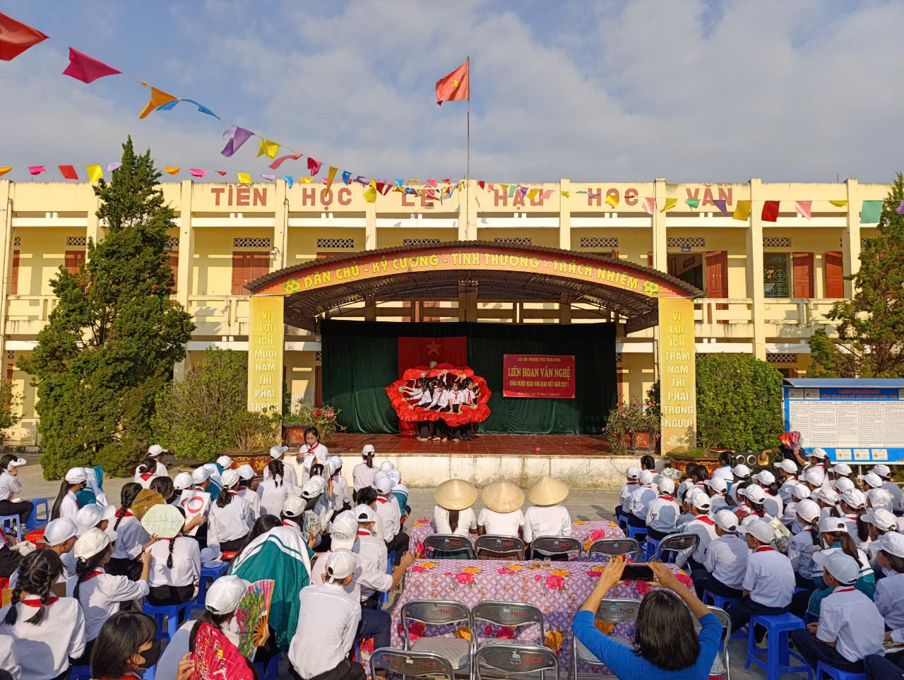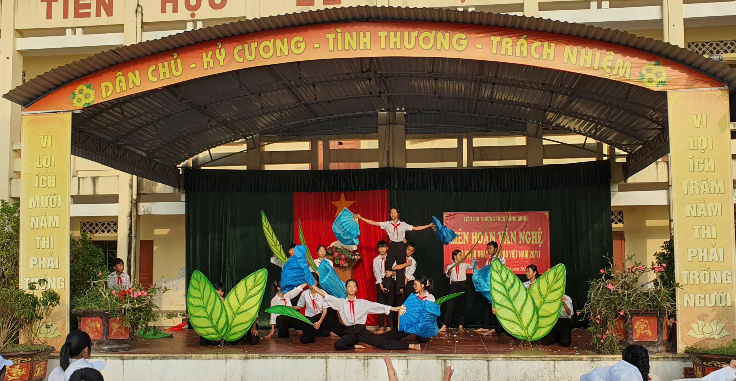 Thực hiện nhiệm vụ năm học và Kế hoạch hoạt động công tác Đội, phong trào thiếu nhi năm học 2024 - 2025; hòa chung không khí hân hoan của cả nước hướng tới chào mừng 42 năm Ngày Nhà giáo Việt Nam (20/11/1982-20/11/2024), vào tiết chào cờ sáng ngày 18/11/2024, trường THCS Đồng Minh đã tổ chức Liên hoan nghệ thuật cho học sinh toàn trường; Với mục đích tạo cho các em học sinh có một sân chơi lành mạnh, bổ ích sau những giờ phút miệt mài học tập; tạo không khí thi đua vui tươi, phấn khởi trong nhà trường; đồng thời góp phần giáo dục cho các em học sinh ý thức tổ chức kỉ luật, tinh thần đoàn kết, học hỏi lẫn nhau, rèn luyện các kĩ năng để phát triển toàn diện trong cuộc sống.