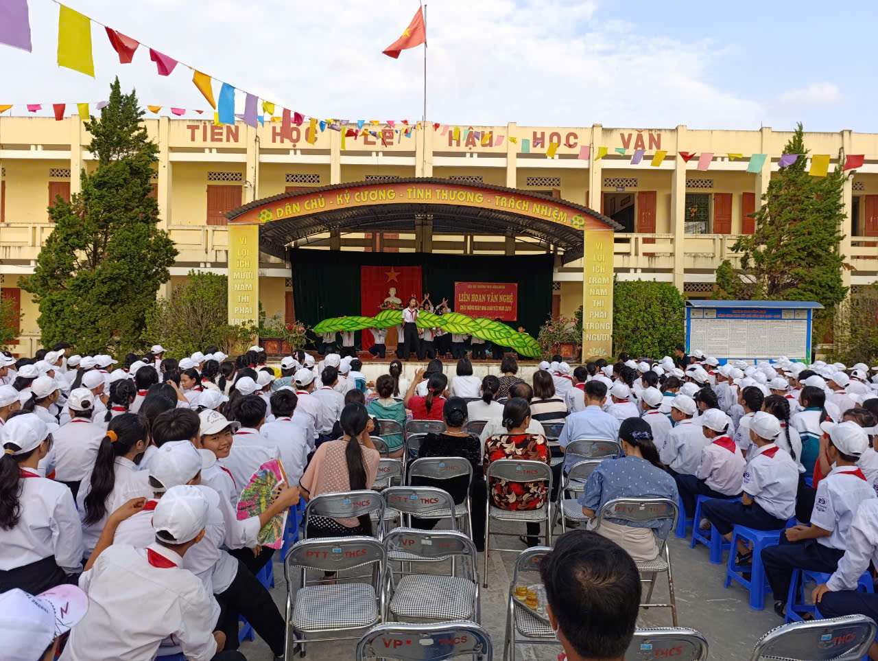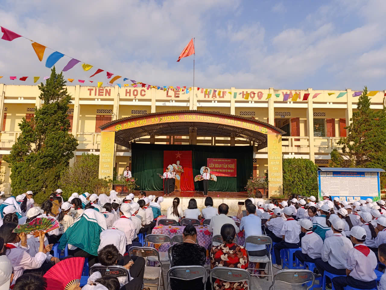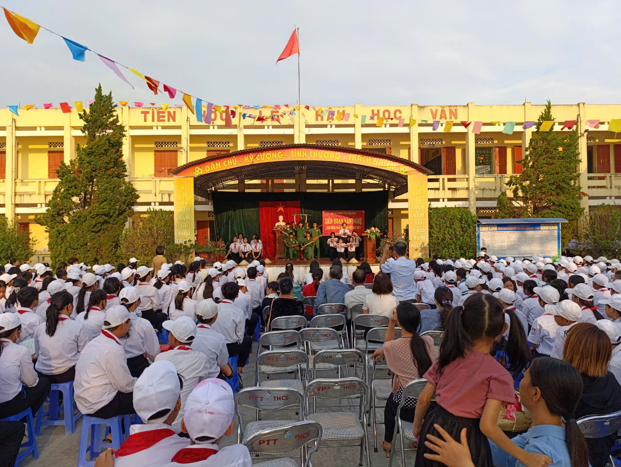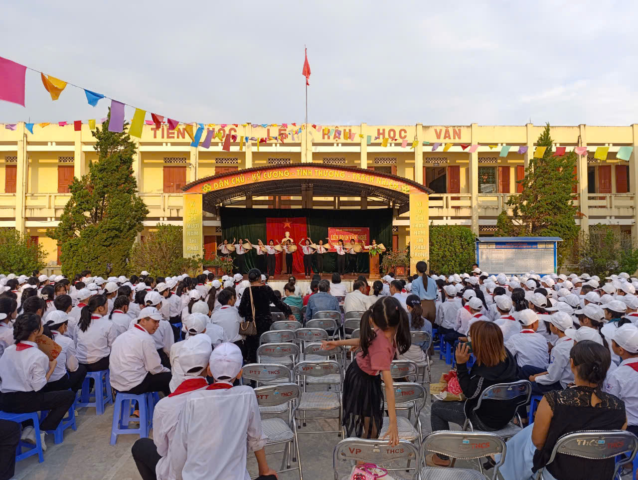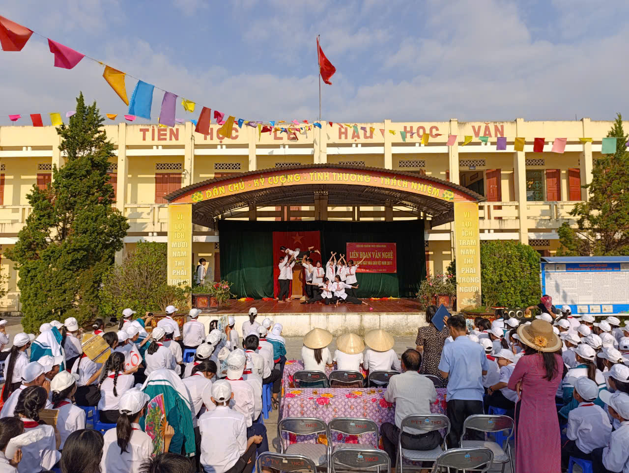 Thực hiện nhiệm vụ năm học và Kế hoạch hoạt động công tác Đội, phong trào thiếu nhi năm học 2024 - 2025; hòa chung không khí hân hoan của cả nước hướng tới chào mừng 42 năm Ngày Nhà giáo Việt Nam (20/11/1982-20/11/2024), vào tiết chào cờ sáng ngày 18/11/2024, trường THCS Đồng Minh đã tổ chức Liên hoan nghệ thuật cho học sinh toàn trường; Với mục đích tạo cho các em học sinh có một sân chơi lành mạnh, bổ ích sau những giờ phút miệt mài học tập; tạo không khí thi đua vui tươi, phấn khởi trong nhà trường; đồng thời góp phần giáo dục cho các em học sinh ý thức tổ chức kỉ luật, tinh thần đoàn kết, học hỏi lẫn nhau, rèn luyện các kĩ năng để phát triển toàn diện trong cuộc sống.