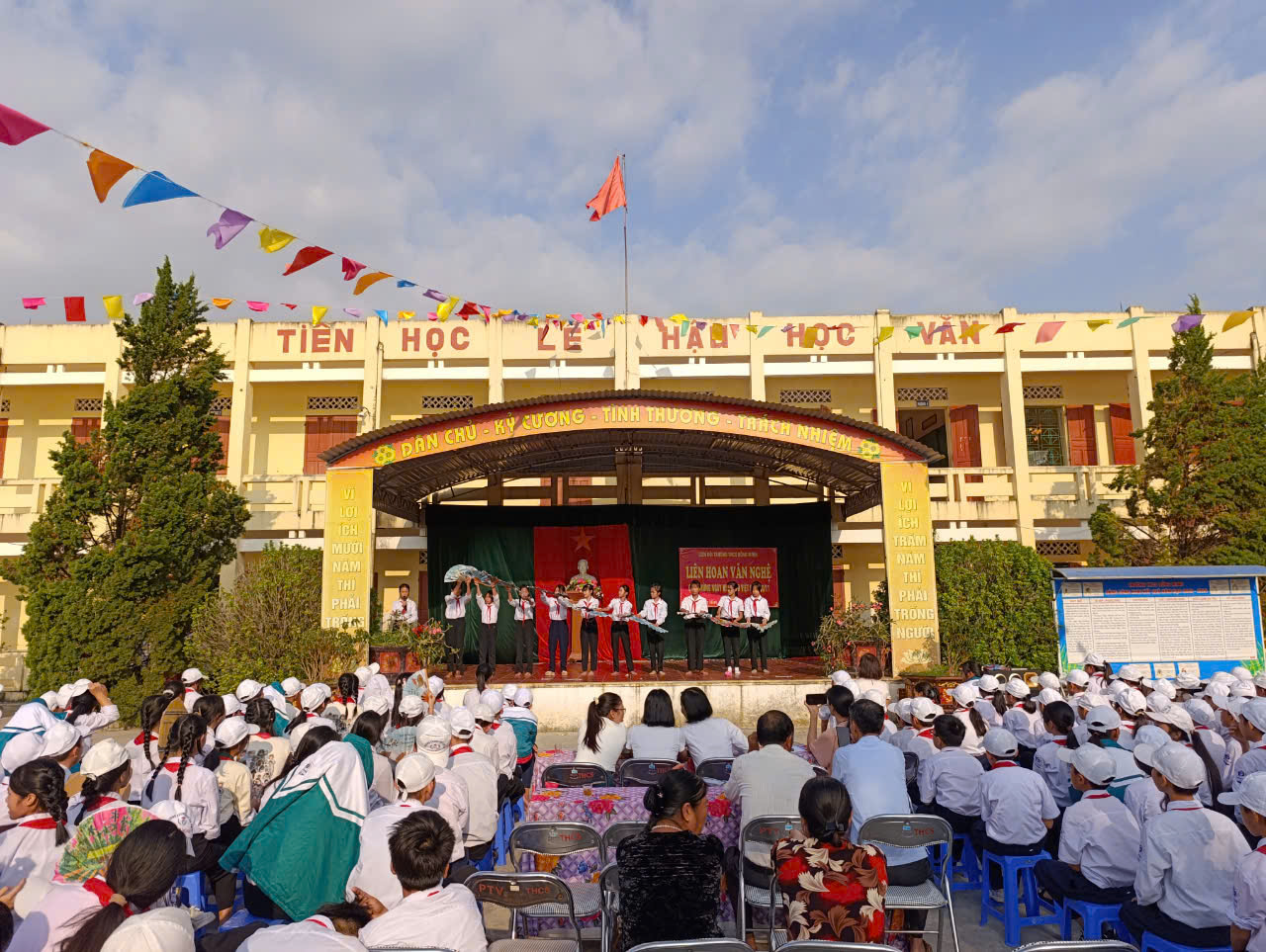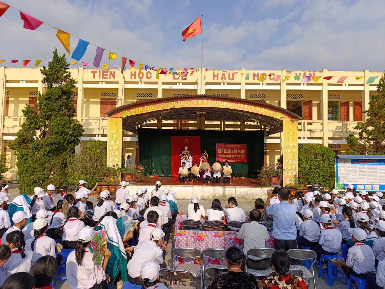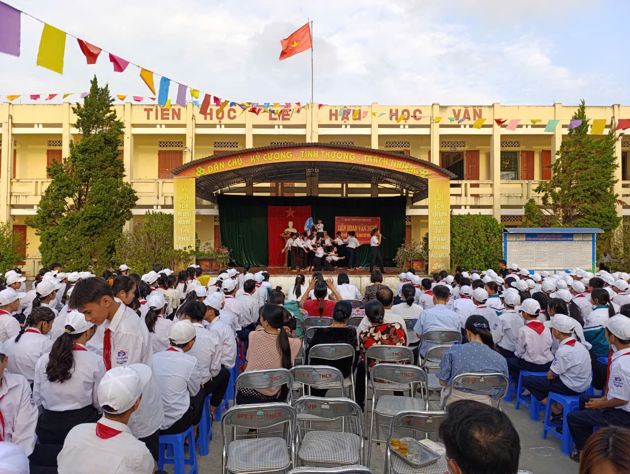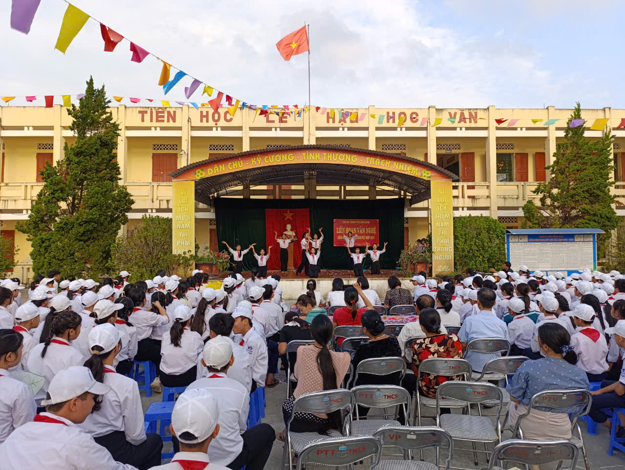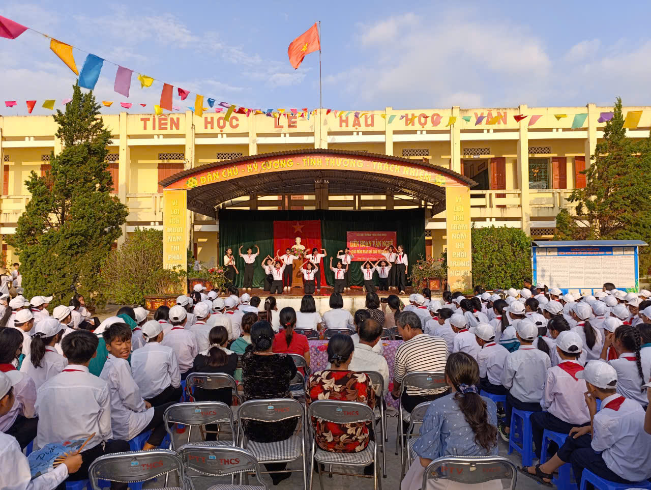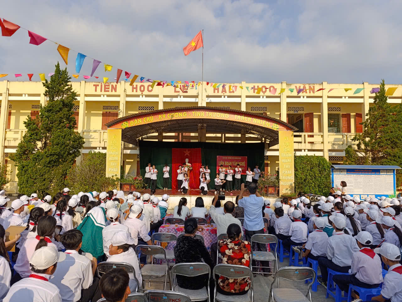 Thực hiện nhiệm vụ năm học và Kế hoạch hoạt động công tác Đội, phong trào thiếu nhi năm học 2024 - 2025; hòa chung không khí hân hoan của cả nước hướng tới chào mừng 42 năm Ngày Nhà giáo Việt Nam (20/11/1982-20/11/2024), vào tiết chào cờ sáng ngày 18/11/2024, trường THCS Đồng Minh đã tổ chức Liên hoan nghệ thuật cho học sinh toàn trường; Với mục đích tạo cho các em học sinh có một sân chơi lành mạnh, bổ ích sau những giờ phút miệt mài học tập; tạo không khí thi đua vui tươi, phấn khởi trong nhà trường; đồng thời góp phần giáo dục cho các em học sinh ý thức tổ chức kỉ luật, tinh thần đoàn kết, học hỏi lẫn nhau, rèn luyện các kĩ năng để phát triển toàn diện trong cuộc sống.