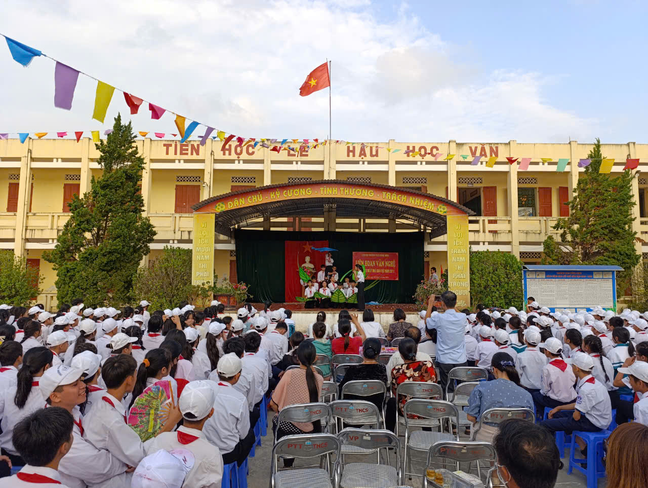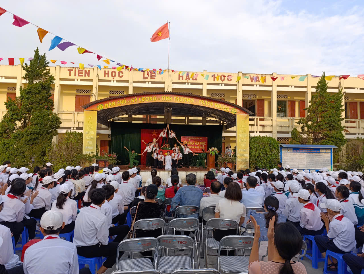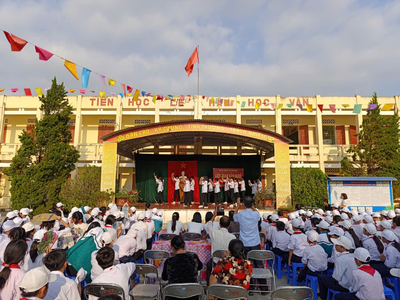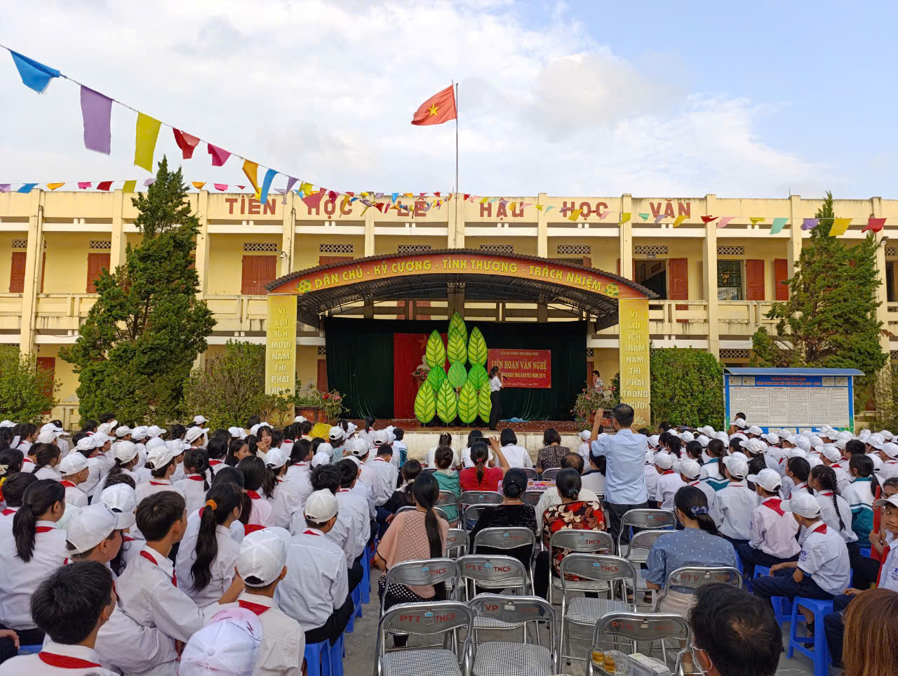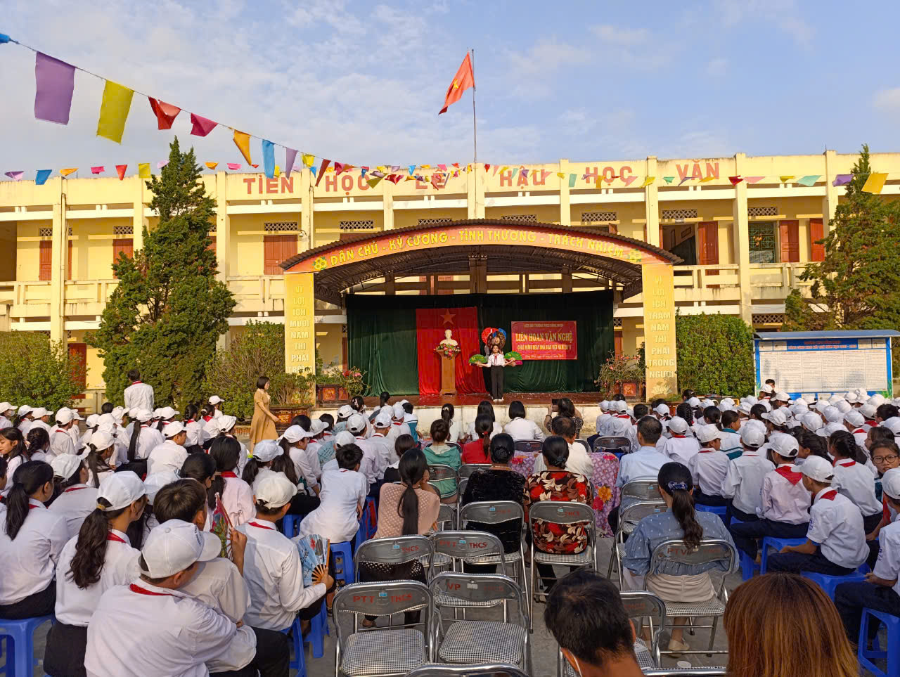 Thực hiện nhiệm vụ năm học và Kế hoạch hoạt động công tác Đội, phong trào thiếu nhi năm học 2024 - 2025; hòa chung không khí hân hoan của cả nước hướng tới chào mừng 42 năm Ngày Nhà giáo Việt Nam (20/11/1982-20/11/2024), vào tiết chào cờ sáng ngày 18/11/2024, trường THCS Đồng Minh đã tổ chức Liên hoan nghệ thuật cho học sinh toàn trường; Với mục đích tạo cho các em học sinh có một sân chơi lành mạnh, bổ ích sau những giờ phút miệt mài học tập; tạo không khí thi đua vui tươi, phấn khởi trong nhà trường; đồng thời góp phần giáo dục cho các em học sinh ý thức tổ chức kỉ luật, tinh thần đoàn kết, học hỏi lẫn nhau, rèn luyện các kĩ năng để phát triển toàn diện trong cuộc sống.