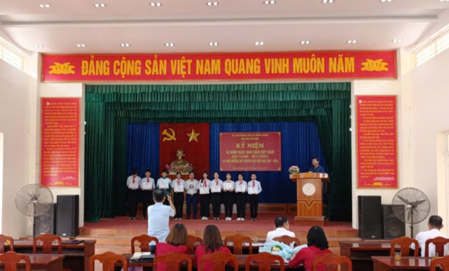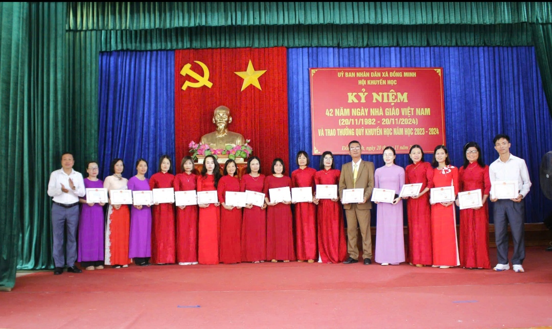 (Cũng nhân Ngày NGVN Huyện ủy, HĐND, UBND, UBMTTQ huyện Vĩnh Bảo đã có lẵng hoa gửi chúc mừng nhà trường; Đảng ủy, HĐND, UBND, UBMTTQ, Hội Khuyến học xã Đồng Minh đã tổ chức Lễ kỷ niệm 42 năm Ngày NGVN và phát thưởng cho CBGV, HS có thành tích cao trong năm học 2023-2024).