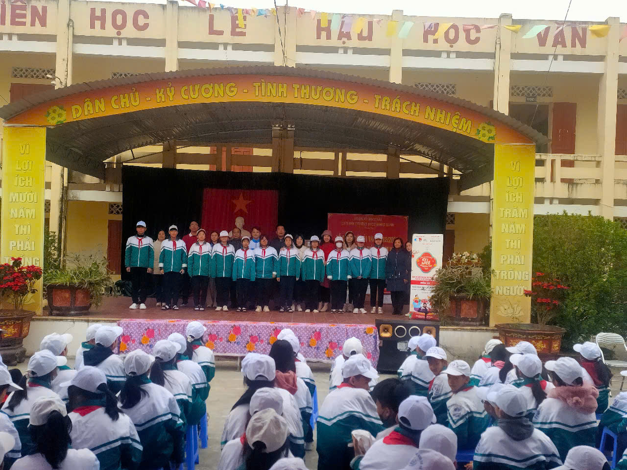 Ngay sau khi cô Tổng phụ trách đánh giá và triển khai công tác nề nếp, phong trào đội của tháng; Liên đội đã tổ chức trao quà “Tết chuyền tay” năm 2025 cho trẻ em vùng cao, với mong muốn chuyền tay không khí và niềm vui của những ngày tết vừa qua đến với trẻ em vùng khu vực biên giới khó khăn, lan tỏa tinh thần đại đoàn kết dân tộc gắn bó chia sẻ trong đồng bào các dân tộc Việt Nam và giúp giảm thiểu lượng rác thải ra môi trường hướng đến thời trang bền vững…