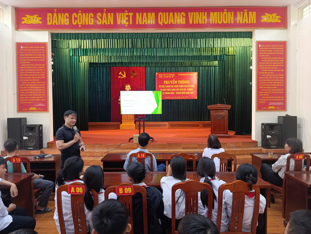 Thực hiện Kế hoạch Giáo dục nhà trường năm học 2025-2026; ngày 30/9/2025 Trường THCS Đồng Minh phối hợp với Trạm Y tế xã Vĩnh Hải (chủ trì) tổ chức Truyền thông tư vấn giáo dục sức khỏe vị thành niên ... cho các em học sinh từ khối 7 trở lên của trường.