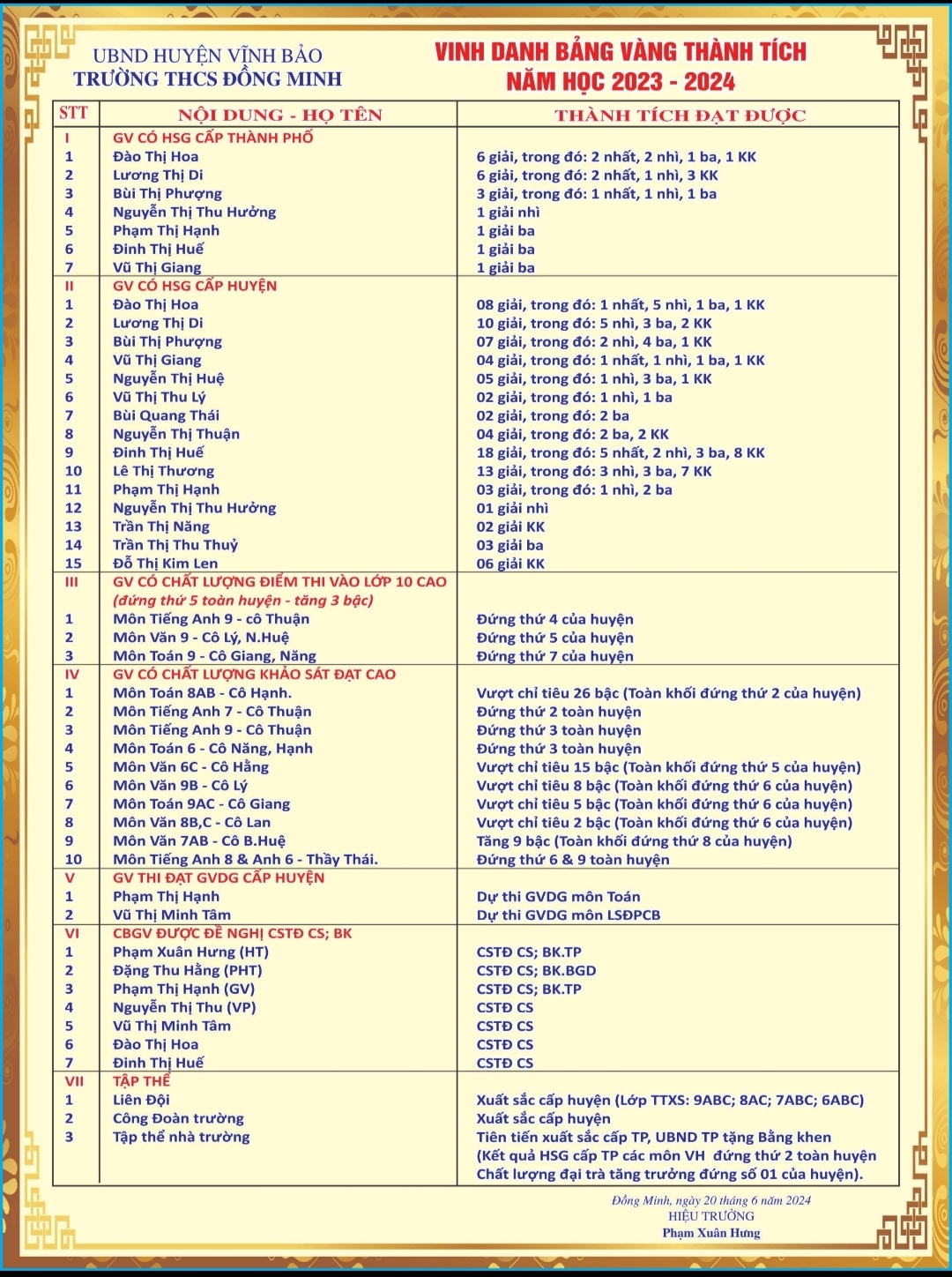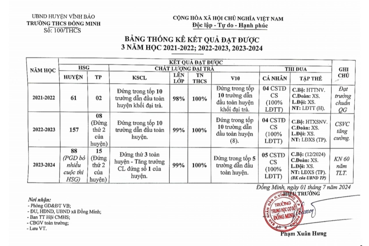 Với những thành tựu trên, trường THCS Đồng Minh đã trở thành địa chỉ đáng tin cậy của nhân dân xã nhà trước thềm năm học mới 2024-2025.