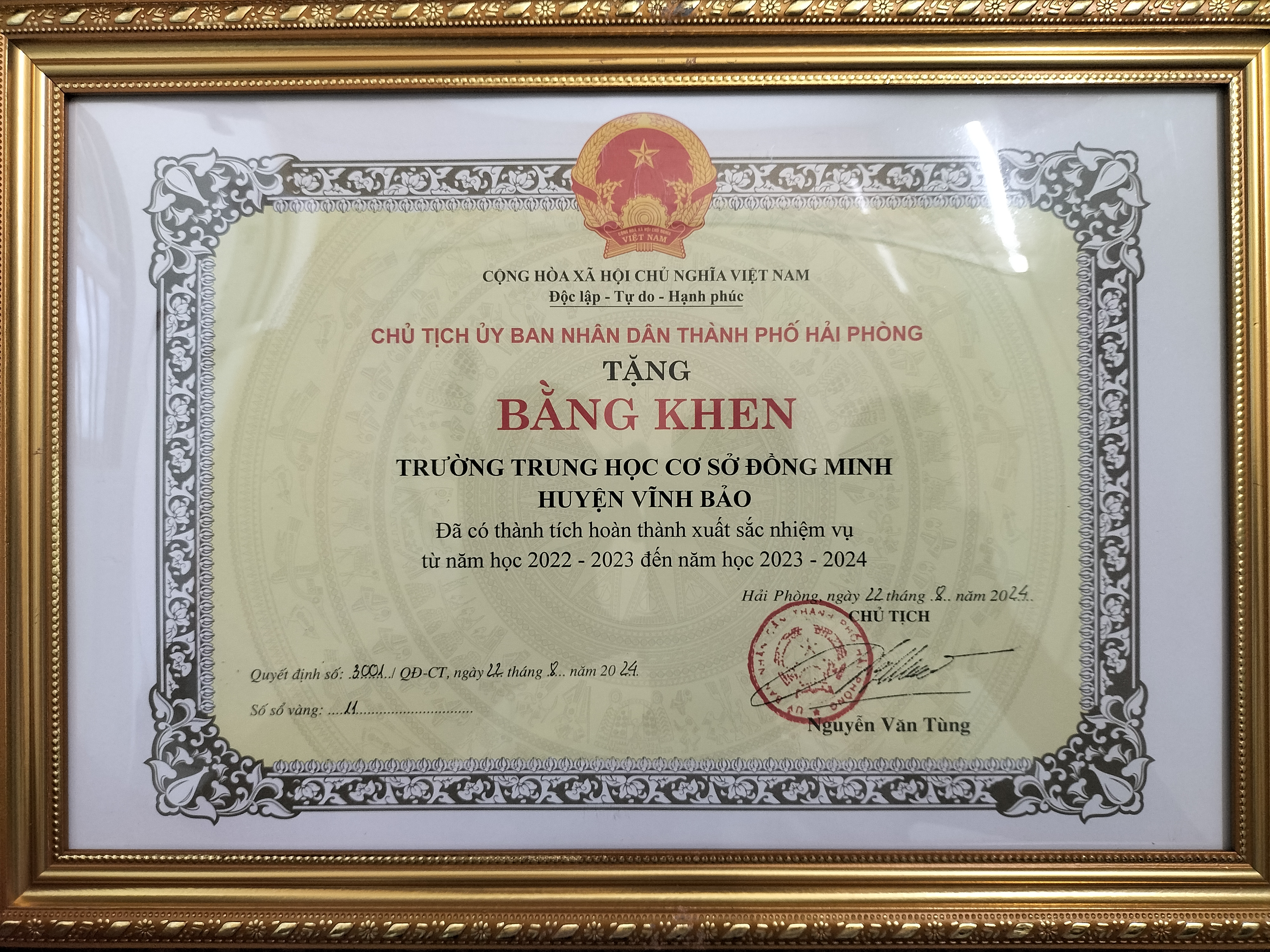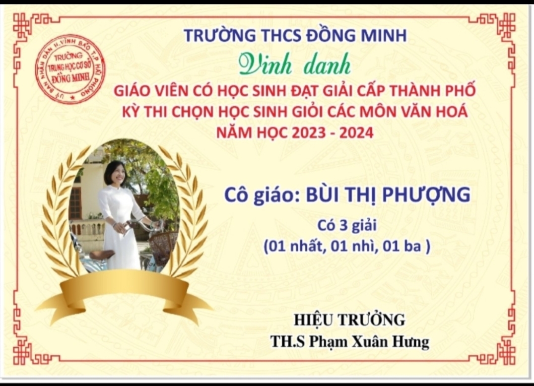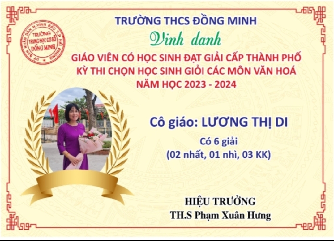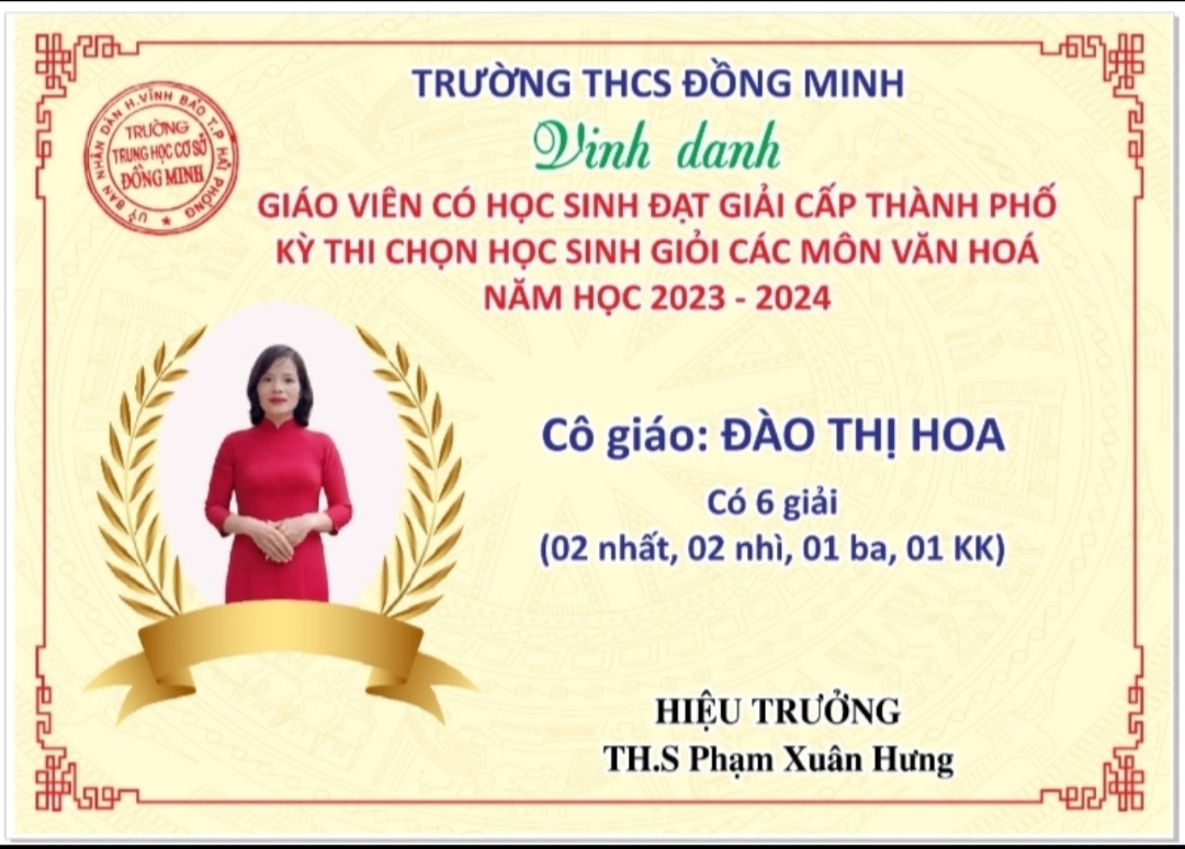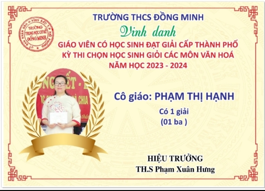 Do có sự cố gắng nỗ lực của thầy và trò trường THCS Đồng Minh nên năm học 2023-2024 là năm học thứ 2 liên tiếp trường đạt danh hiệu "Tập thể lao động xuất sắc" và Bằng khen của UBND Thành phố HP.